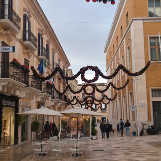 Langsam hungrig geworden, geht es durch die weihnachtlich geschmückten Straßen zum Mittagessen.