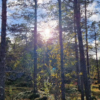 Noch völlig hin und weg von den Rentieren, kommen wir am Parkplatz an und trinken erst mal einen Kaffee. Dann starten wir mit unserer Rundwanderung. Es gibt verschiedene Möglichkeiten, wir entscheiden uns für die knapp 6 km lange Tour. Kaum los gelaufen, befinden wir uns in einer anderen Welt. Eine herrliche Stille umgibt uns. Die typische Landschaft Norwegens mit Heide, Sumpfgebieten, weiten Kiefernwäldern liegt vor uns.