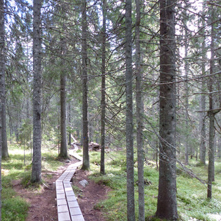 Weiter geht es zur Långtjärnshällorna (ich kann es auch nicht aussprechen), aber es ist absolut traumhaft. Zuerst wieder über Holzplanken, die über teils mooriges Sumpfgebiet führen und dann kommen Felsenplatten, oft moosbewachsen. Und immer wieder durch herrliches Waldgebiet in den schönsten Farben des Herbstes.